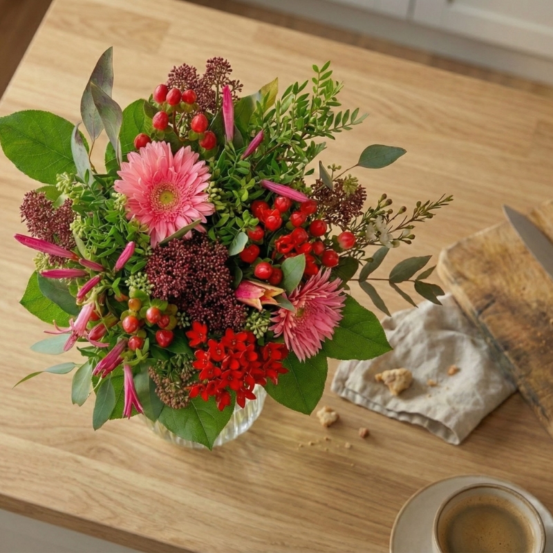 Hos Bloomit får du ikke blot en smuk buket, men også lokal håndværk og personlig levering på den dato, du vælger. Vores fleksible leveringsmuligheder sikrer, at din buket når frem til rette tid, uanset anledningen.
