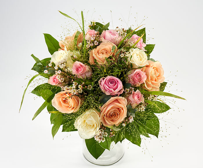 Floristens valg sikrer, at buketten altid er unik og tilpasset sortimentet hos den lokale blomsterbutik. Dette giver et personligt præg og sikrer, at gaven er af højeste kvalitet. Roser symboliserer kærlighed og passion, hvilket gør denne buket til det perfekte valg, når du vil udtrykke dine følelser med stil og elegance.